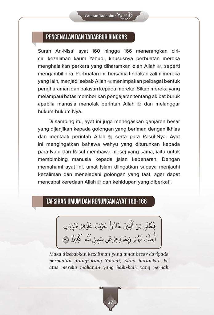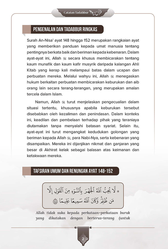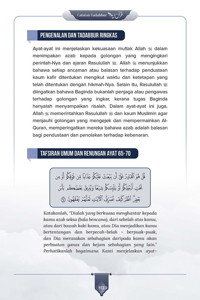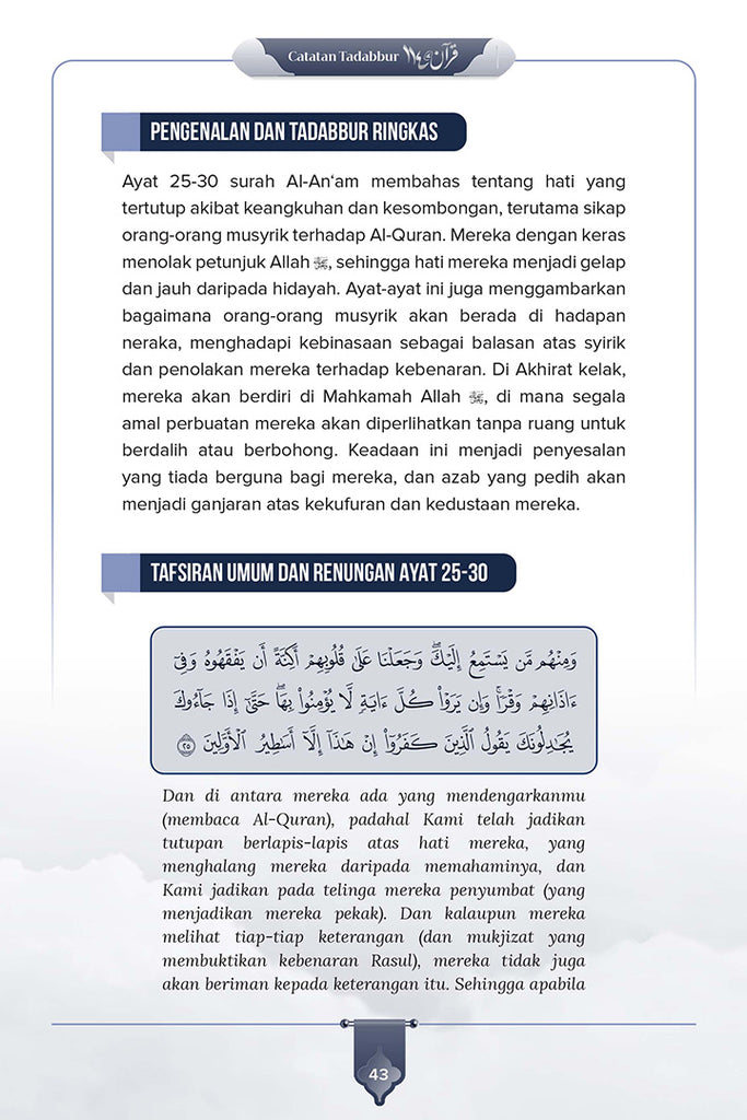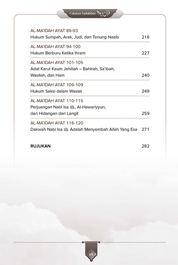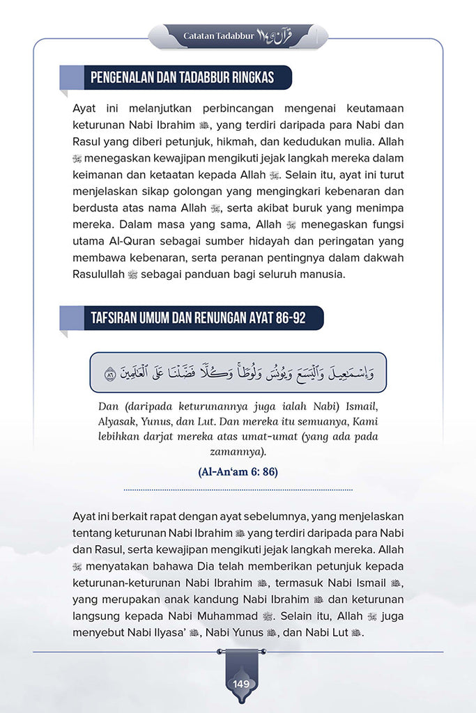 Oleh itu, naskhah Catatan Tadabbur Quran@114 ini diterbitkan bagi memudahkan masyarakat pencinta Al-Quran untuk menelaah dan memahami kandungan-kandungan penting yang disiarkan dalam program Quran @114. Seterusnya mampu mengamalkan serta bersahabat dengan Al-Quran hingga ke akhir hayat.